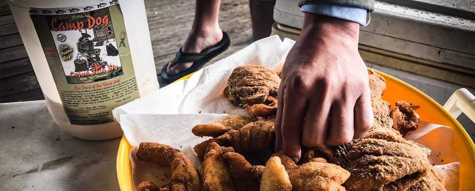 In Louisiana, at every hunting and fishing camp, there is always someone who stays behind to cook and watch over the camp, while the other hunters go out into the woods, bayous, and swamps in search of game. This person is called the “Camp Dog.” He is often overlooked and rarely complimented for his hard work. Today we salute you, Mr. Camp Dog, Master of the Black Pot, Supervisor of the Onion Cutters and Potato Peelers, Guardian of the Ice Chest, and # 1 Camp Fire Builder. You just keep on cooking and let us bring home the bacon! We love you man!